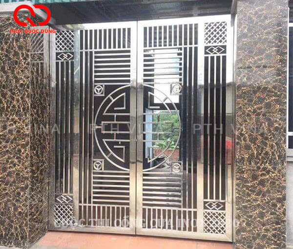 + Tính thẩm mỹ: Cửa cổng inox có độ sáng bóng cao kết hợp với họa tiết trang trí đẹp mắt mang lại cho cửa sự mềm mại và tạo nên không gian hiện đại.